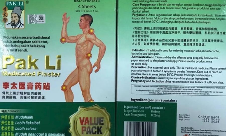 Dr noor hisham also said that the sale of 'pak li medicinal plaster' must be stopped immediately at all retail outlets as it goes against the sale of drugs act 1952 and control of drugs and cosmetics regulations 1984. Orang awam digesa mengelak daripada membeli dan menggunakan produk tradisional pak li medicated plaster yang dikesan. Pendaftaran produk itu dibatalkan oleh pihak berkuasa kawalan dadah (pbkd). How much adults unless otherwise medically prescribed, apply one plaster twice a day. The product pak li medicated plaster had its registration canceled by the drug control authority on dec 5 after it was found to contain scheduled poison diphenhydramine.