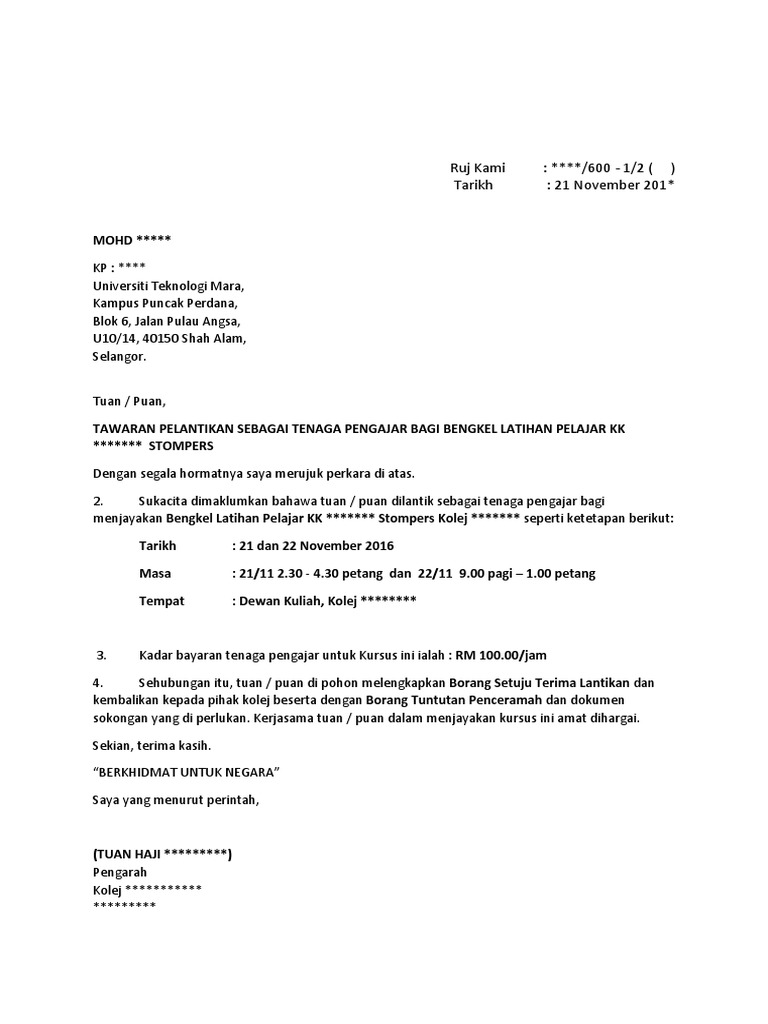 Anda mungkin berubah fikiran tentang pekerjaan kerana beberapa alasan. Pdf surat setuju terima tender letter of acceptance of tender nabilah aiman academia edu. Surat tawaran pekerjaan mempunyai komponen seperti berikut,surat tersebut haruslah mengandungi maklumat jawatan yang ditawarkan ,tarikh mula bekerja dan maklumat faedah kerja dan program pencen. Surat rasmi dsai kepada pm via thesinofknowledge.blogspot.com. Walaubagaimanpun contoh surat tawaran kerja dibawah akan memudahkan pencarian anda.